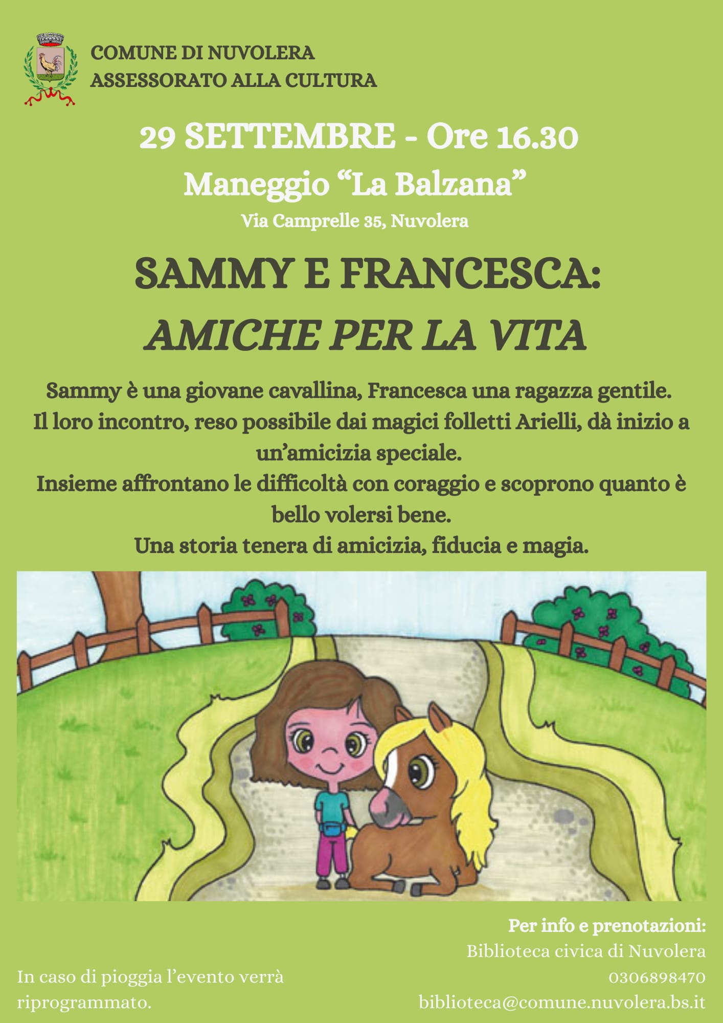 👉 DALL'ASSESSORATO ALLA CULTURA 📚📖 SAMMY E FRANCESCA: AMICHE PER LA VITA 🔸️ Lunedì 29...