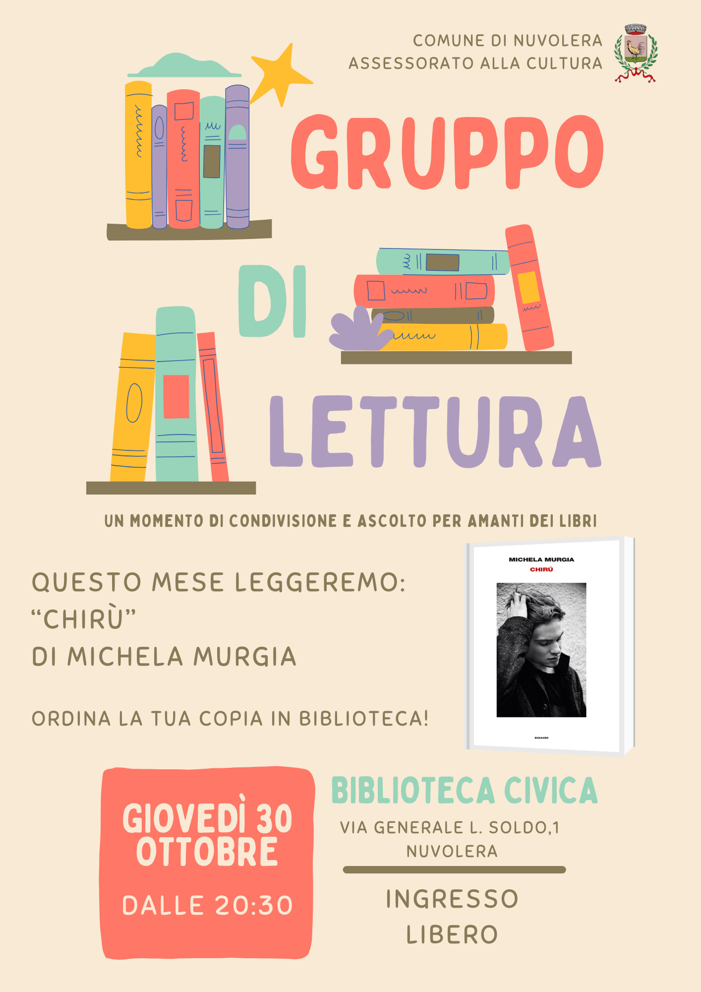 👉 DALL'ASSESSORATO ALLA CULTURA 📚📖 GRUPPO DI LETTURA IN BIBLIOTECA: CHIRU' 🔸️...